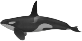 Delfínido de mayor tamaño (5,5-9,8 m). Color negro y blanco, con mancha ocular blanca. Dimorfismo sexual: machos con aleta dorsal muy alta (hasta 1,8 m). Forman grupos familiares muy estrechos (pods). Curiosas y de natación rápida.
